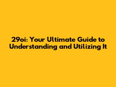 29oi: Your Comprehensive Guide