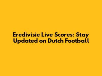 Eredivisie Live Scores: Stay Updated On Dutch Football