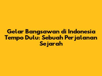 Gelar Bangsawan Di Indonesia Tempo Dulu: Sebuah Perjalanan Sejarah