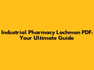 Industrial Pharmacy Lachman PDF: A Comprehensive Guide