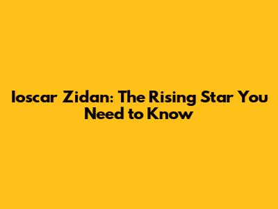 Ioscar Zidan: The Rising Star You Need To Know