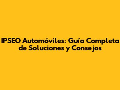 IPSEO Automóviles: Guía Completa De Soluciones Y Consejos