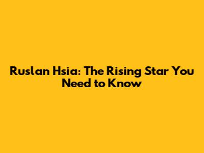 Ruslan Hsia: The Rising Star You Need To Know